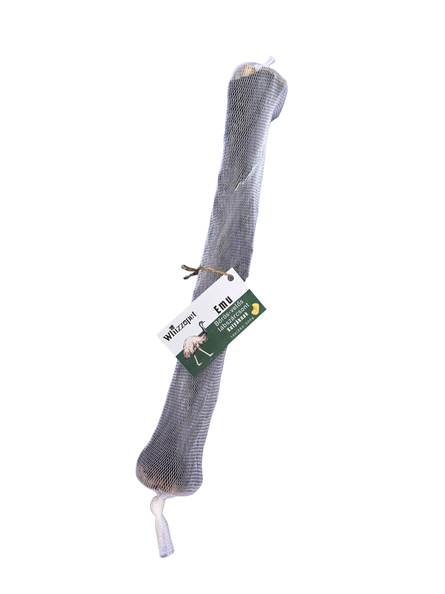 Fontos: Mivel természetes csontról van szó, minden darab egyedi, és rágás közben törhet. Az emu csontok anatómiai szerkezete miatt jellemzően inkább kopnak és morzsolódnak, de a kutya rágási erejétől függően darabok is leválhatnak. Mindig felügyelet mellett add a kutyádnak, és ha éles vagy szokatlan törést tapasztalsz, vedd el tőle.