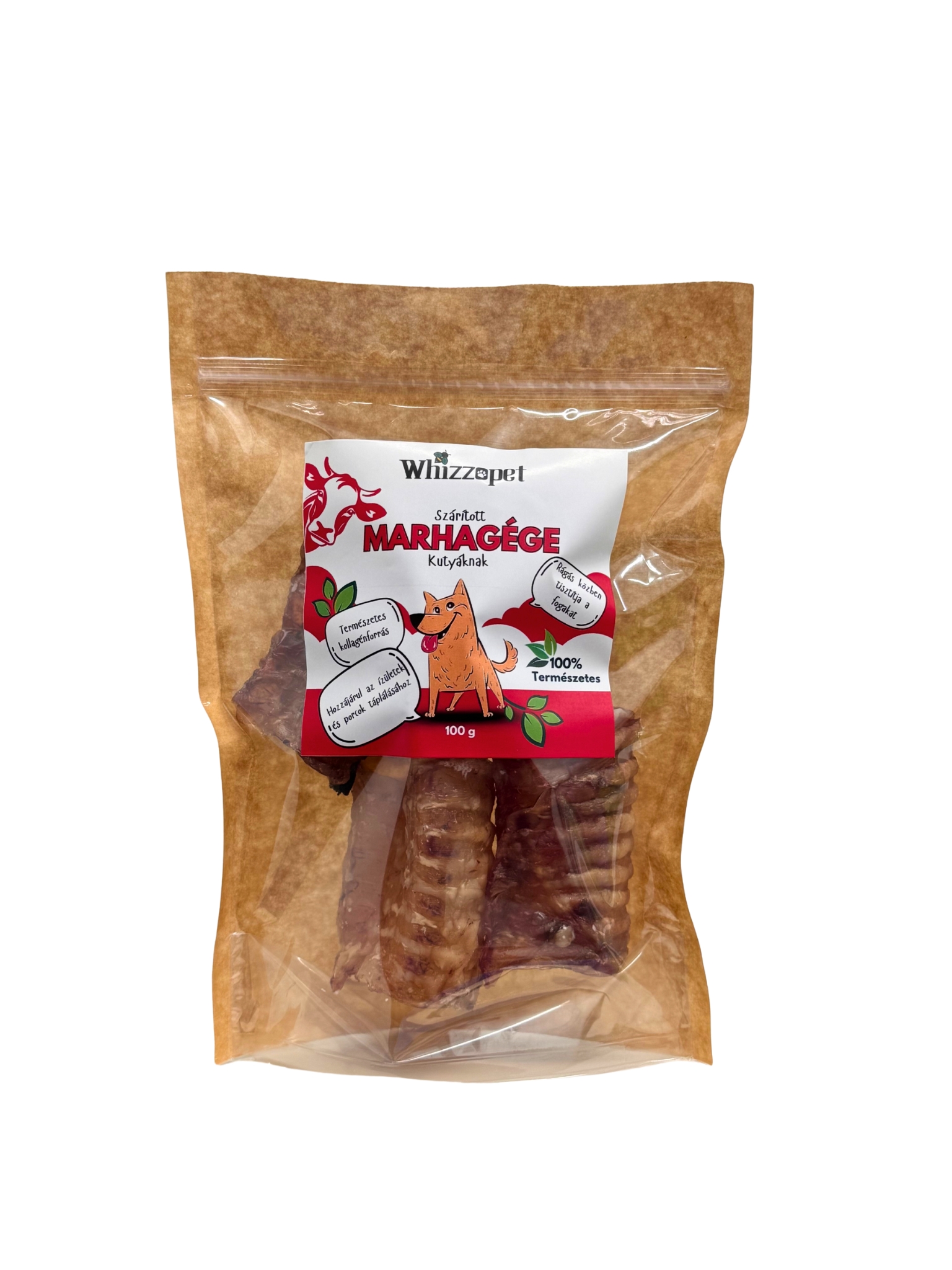Csak szárított marhagége — semmilyen adalékanyagot, tartósítószert vagy mesterséges összetevőt nem tartalmaz.