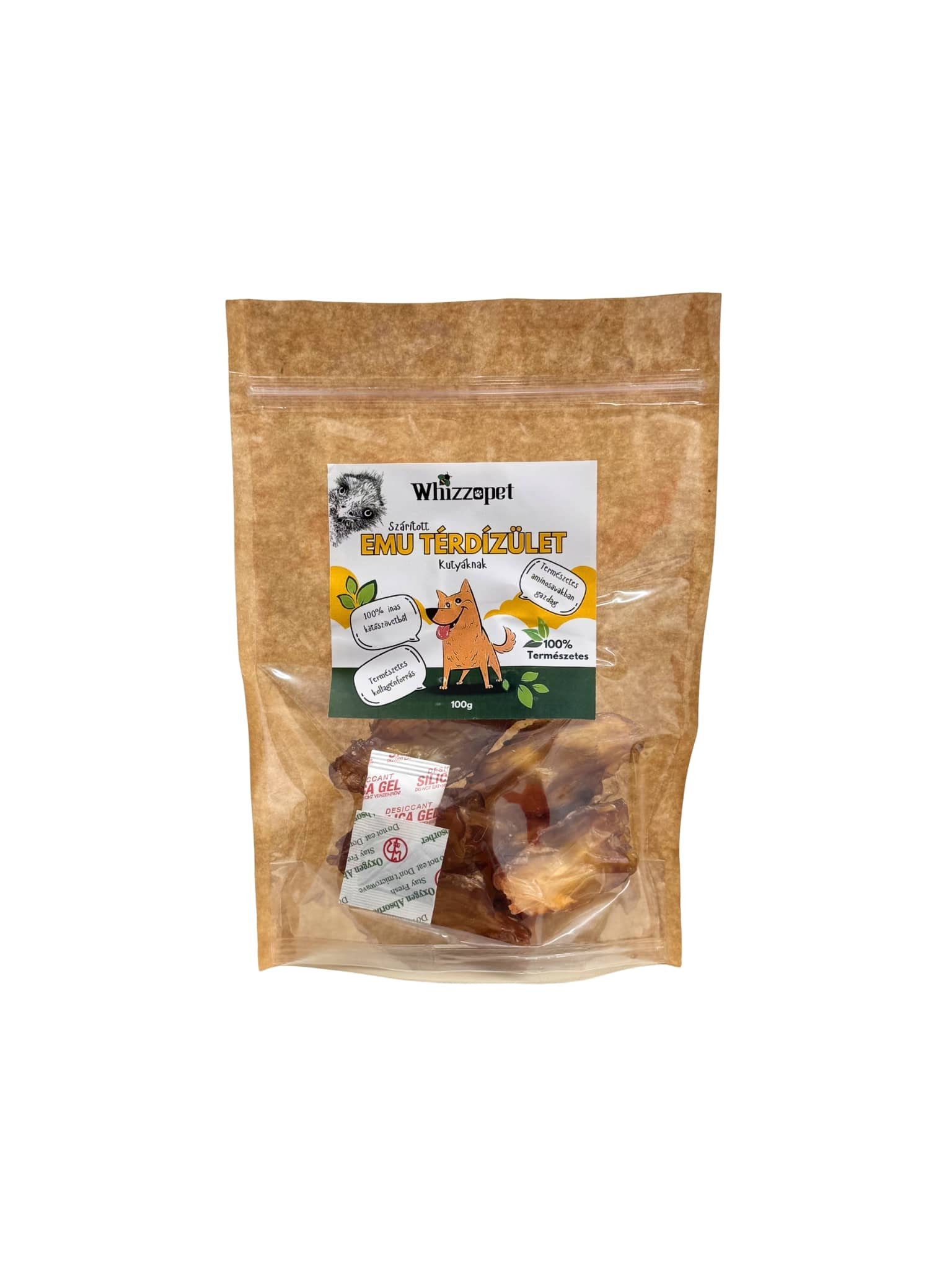 A szárított emu térdízület egy tartós, hosszan rágható hipoallergén jutalomfalat kutyáknak, amely kiváló fehérje és kollagénforrás.