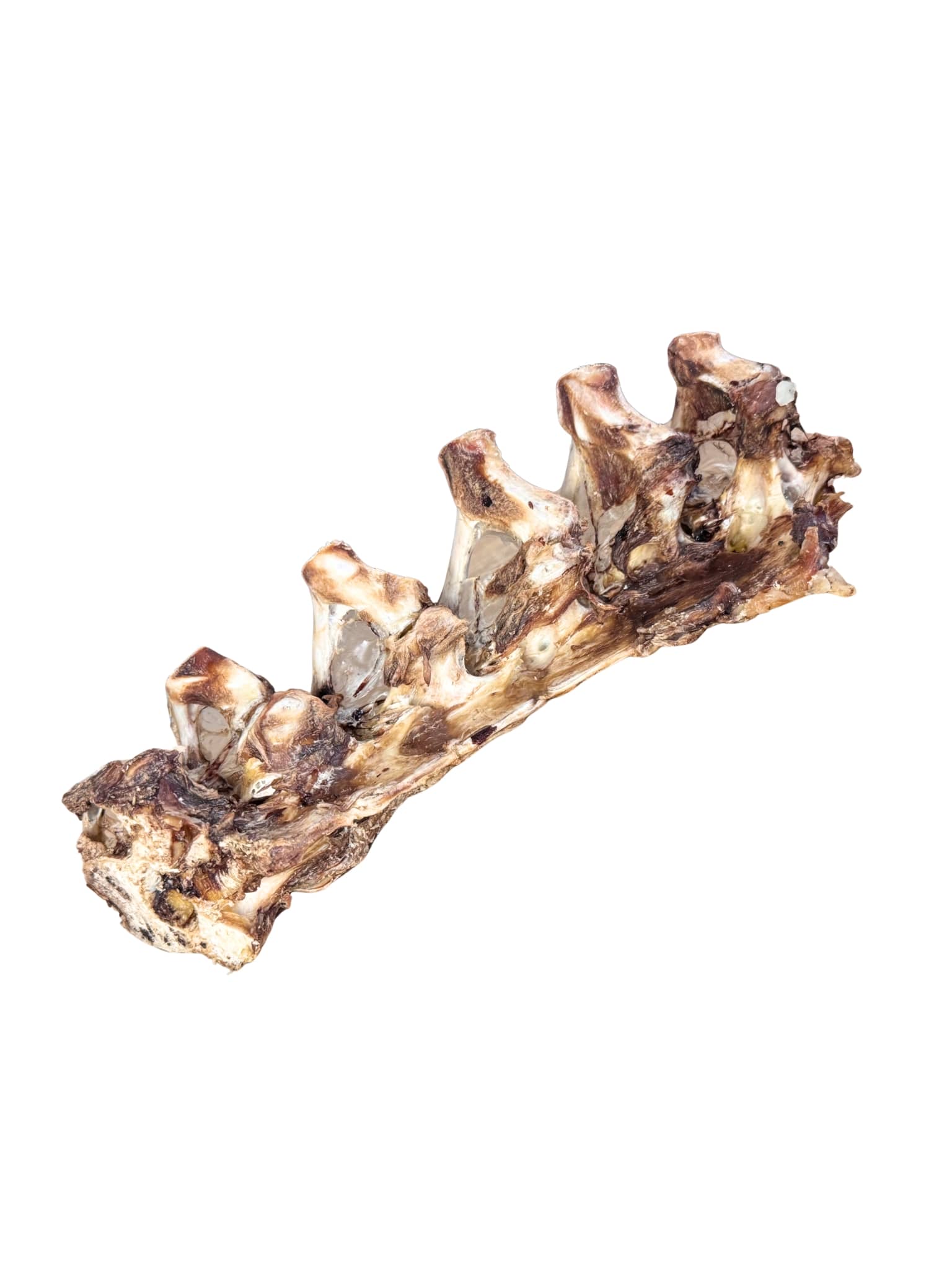 A szivacsos csontszerkezet, a porcos elemek és a rajta maradó hússzövet kombinációjával komplex rágási élményt biztosít. Nemcsak fizikailag köti le a kutyát, hanem mentálisan is stimulálja, miközben hozzájárulhat a fogak tisztításához és a rágási igény kielégítéséhez. Ideális választás azok számára, akik valóban természetes, feldolgozatlan és strukturálisan gazdag rágót keresnek kutyájuk számára.