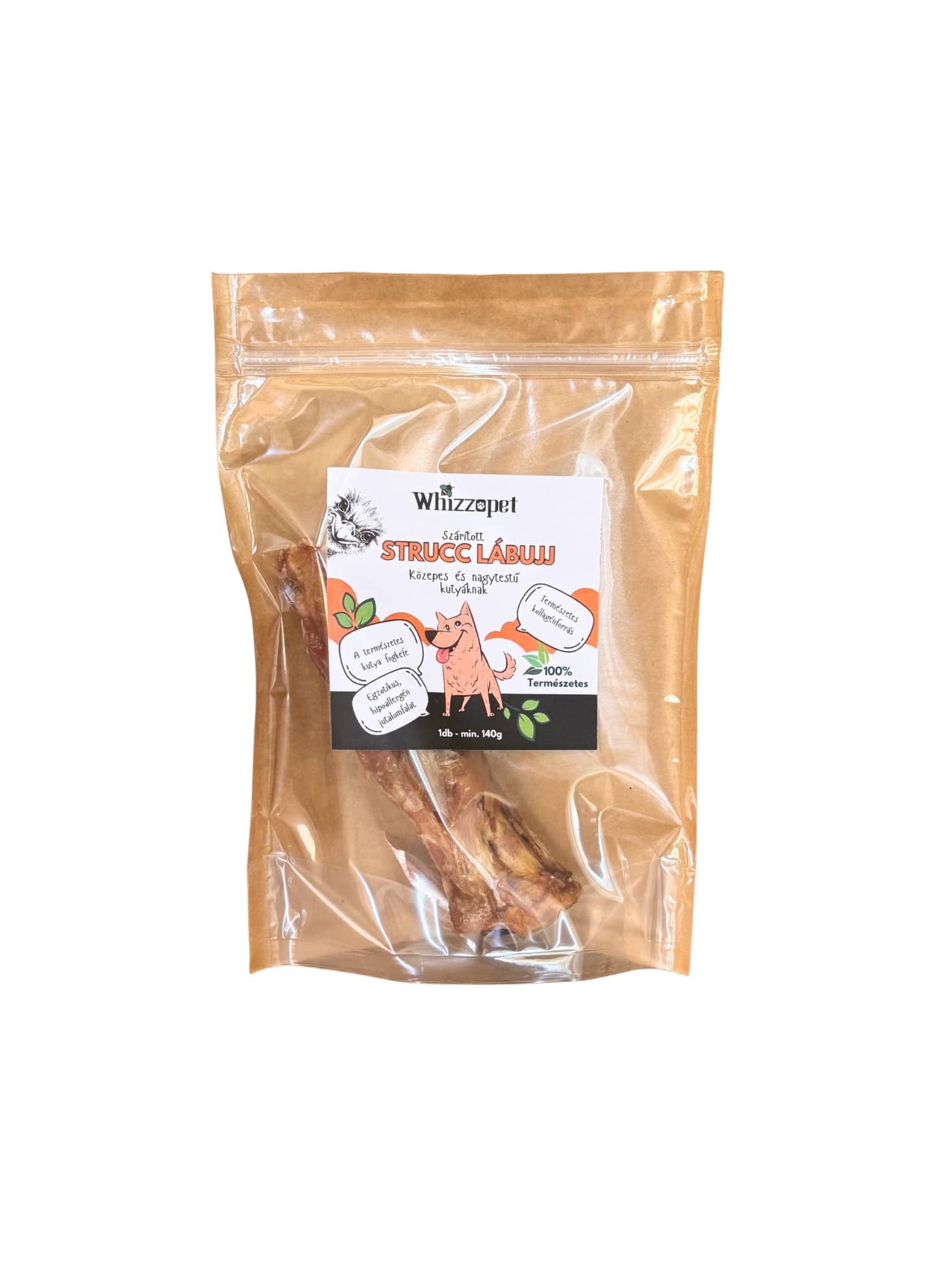 A nagy strucc lábujj közepes és nagytestű kutyák számára egy természetes rágó csonttal és inas szerkezettel, amely hozzájárul a fogak mechanikai tisztításához.