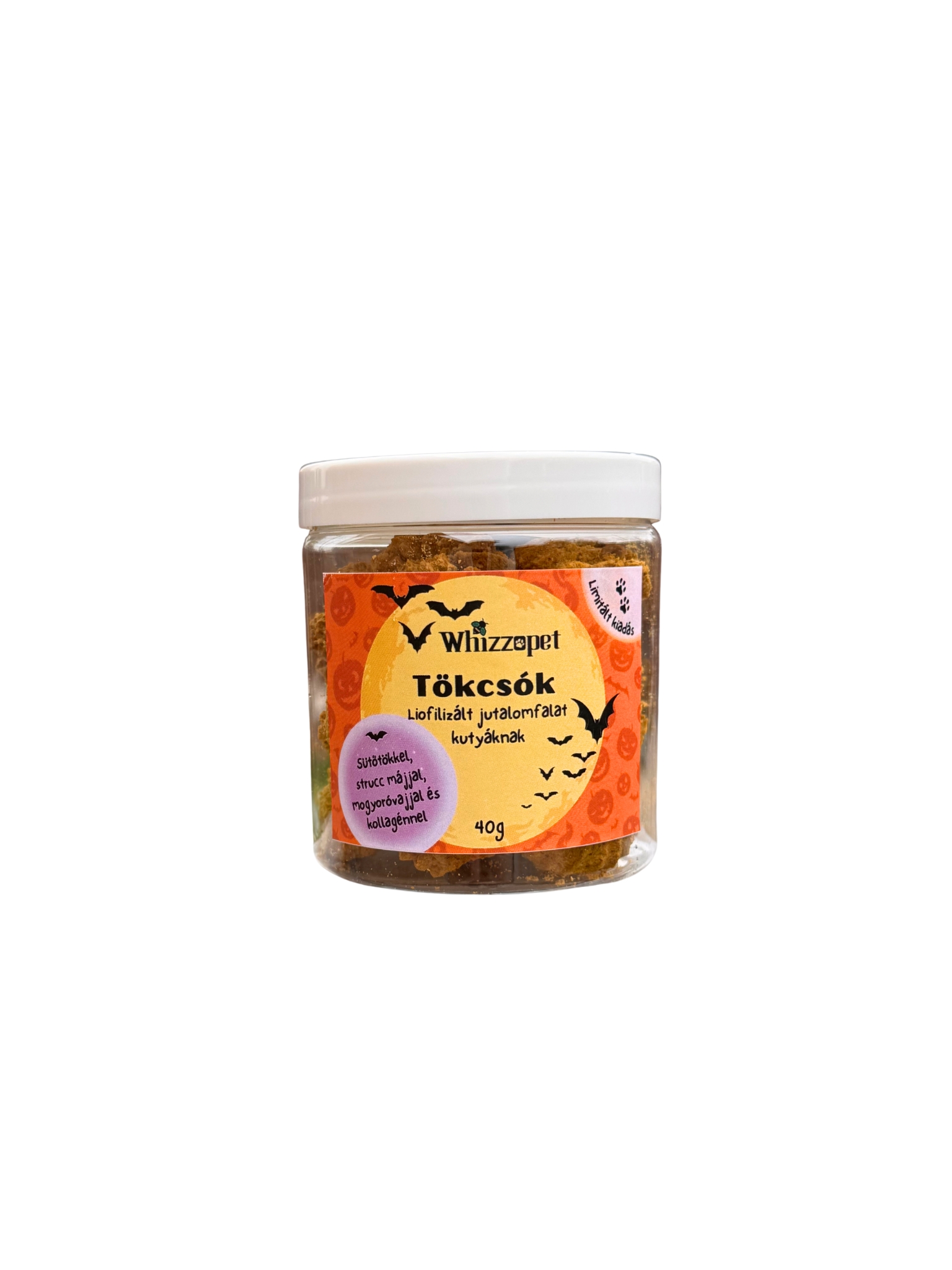 A Whizzopet Tökcsók pontosan erre az elvre épül: egy természetes, hipoallergén jutalomfalat kutyának, amely sütőtökkel, mogyoróvajjal, almarosttal, struccmájjal és kollagénnel készül. Ez a funkcionális, liofilizált snack nemcsak finom, hanem kifejezetten egészséges is. A Tökcsók tökéletes választás, ha természetes jutalomfalatot keresel kutyádnak, ami támogatja az emésztést, a bőrt és az ízületeket is.