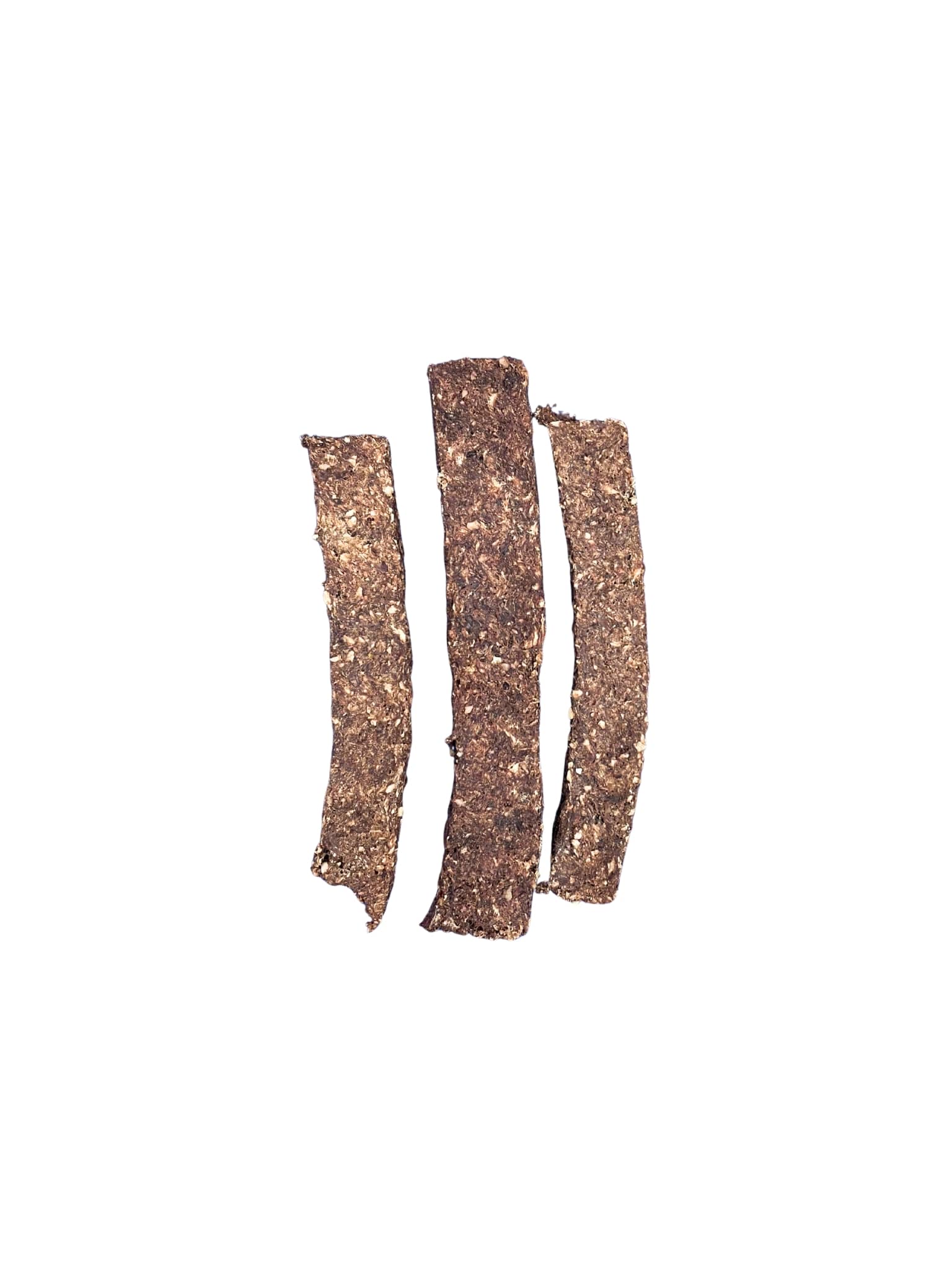 A darált csont ebben az összetételben nem domináns elem, hanem természetes ásványianyag-forrásként van jelen. A kalcium és a foszfor a fehérjével együtt, fokozatosan hasznosul, ami közelebb áll a természetes zsákmányállatok összetételéhez, mint az izolált kiegészítők. Ez a hármas együttese adja a jutalomfalat kiegyensúlyozott, nem túlterhelő jellegét.